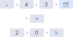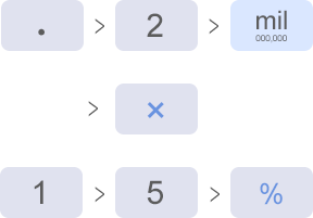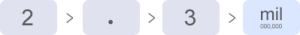 - If you want to input “2.3 Million”, you just have to click in the following order: