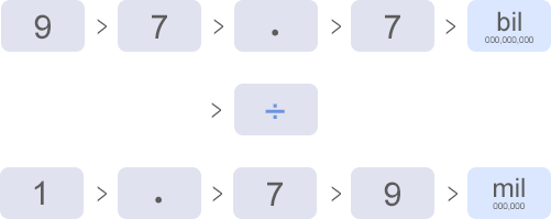 - If you want to input “7.6 Billion”, you just have to click in the following order:
